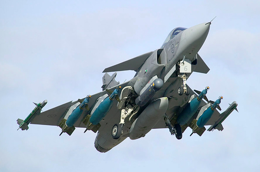 On July 25, 2018, a JAS 39C Gripen fighter jet from the Swedish Air Force’s F 17 wing dropped a single 500-pound class GBU-49/B Paveway precision-guided bomb on a part of the burning forest. The fire around the range has been burning for two weeks already, threatening nearby communities and forcing evacuations.