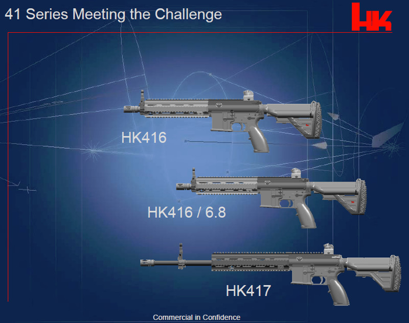 did experiment with a version of its HK 416 rifle, which the M27 is based on, chambered in the 6.8mm Remington Special Purpose Cartridge, but it is unclear how many parts that type shared with the 5.56mm rifles. Based on examples of conversions of other AR-15/M16 pattern rifles and derivatives, this could as simple as swapping out the upper half of the gun. It’s not clear if it would be as easy to modify the weapons to accommodate any other type of six-millimeter round, though.