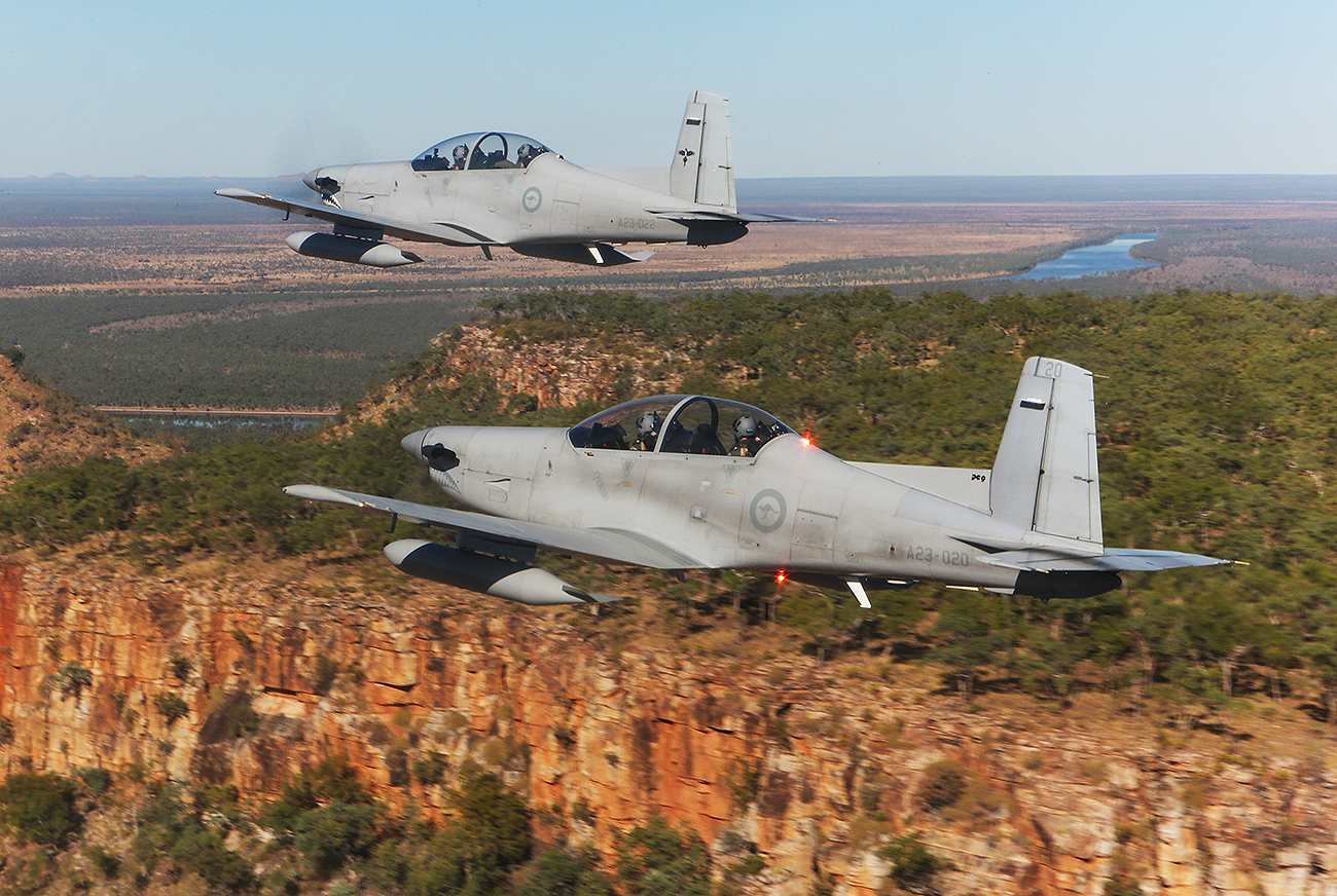 Australia’s preeminent multi-national air warfare exercise Pitch Black is underway down under and this iteration has drawn a very diverse mix of participants. Everything from Indian Su-30MKI Flankers to USAF B-52H Stratofortresses are participating in the biennial large force employment (LFE) set of drills. The USMC, in particular, is participating in force, with MV-22s Ospreys being part of the aircraft roster. Based on photos just released by the Royal Australian Air Force, the Ospreys were escorted by RAAF PC-9 light air support turboprop aircraft during an insertion drill—a sign of what could come for the tilt-rotor community.