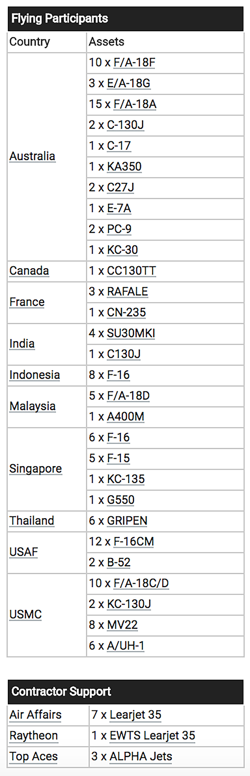 140 aircraft and 4,000 personnel are taking part in Pitch Black 2018, which is primarily held out of RAAF Base Darwin and RAAF Base Tindal. You can see the full list of the flying participants and their aircraft below: