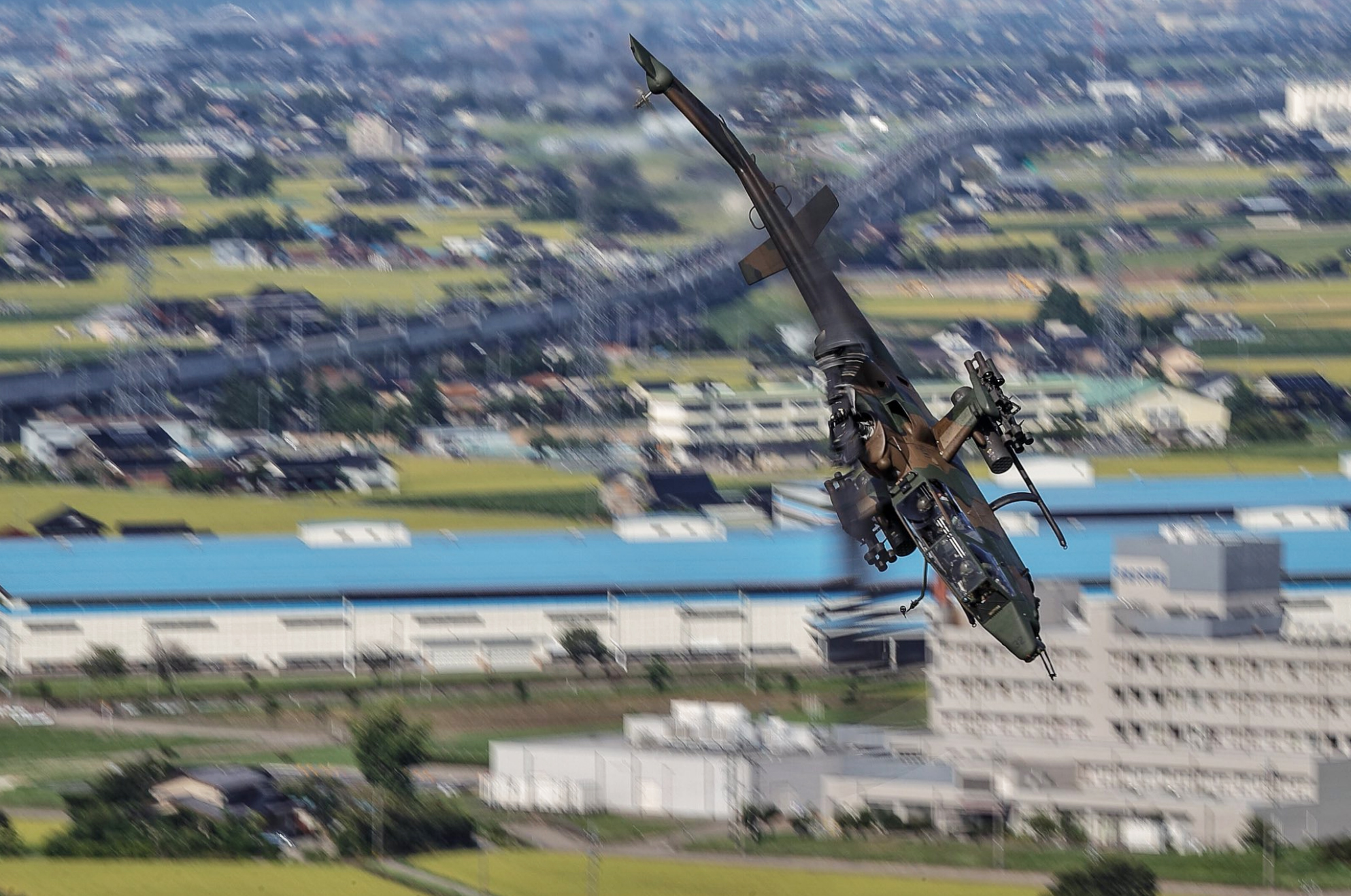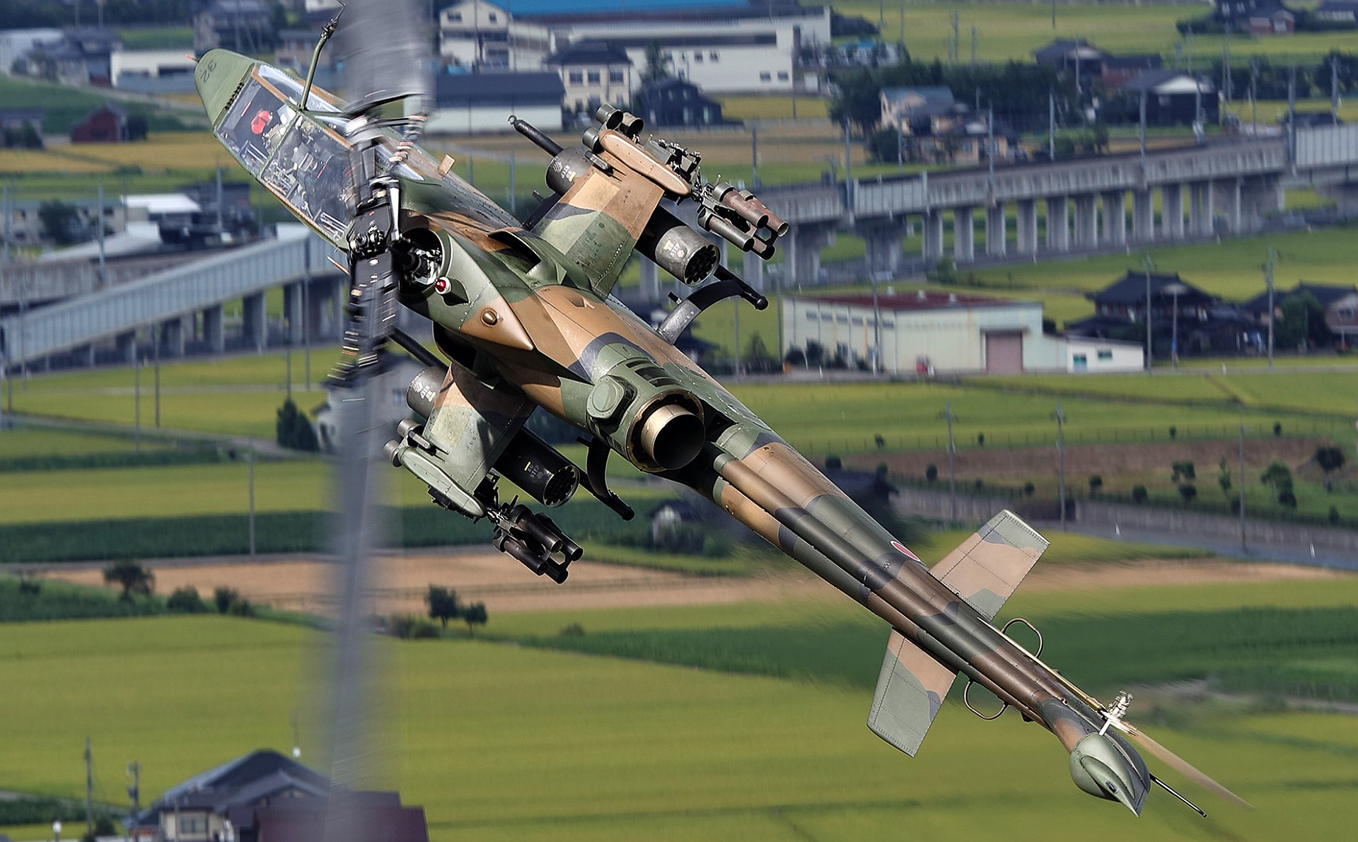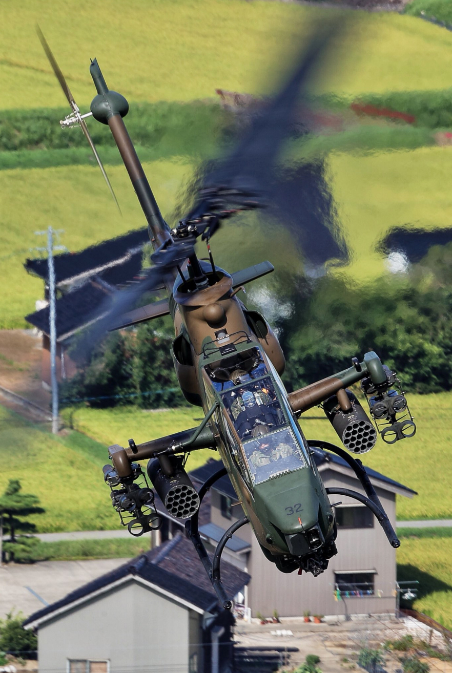 The series of photos below were taken during the Helicopter and Disaster Prevention Festival held in Oyabe, Japan on August 25th, 2018. Our photographer positioned himself in a building on the hillside above the festival to capture the Japanese Ground Self Defense Force AH-1S demo in absolutely spectacular fashion.