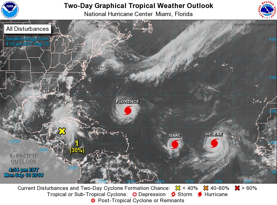 All this is happening in the Pacific while in the Atlantic, Hurricane Florence is looking to become an incredibly perilous event for America’s southeastern seaboard, with the Carolinas seemingly directly in its sights. Florence is already a category four storm, packing winds of at least 130 miles an hour and it really doesn’t look like it will weaken.