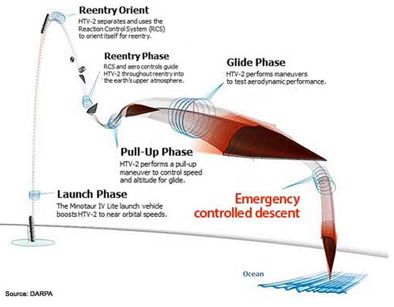 It looks like the balloon’s payload adapter is carrying three glide vehicles, two of which are very similar with the third being clearly a different design. In fact, they appear to closely match the two designs that we have seen pictures of (also shown in this article below).