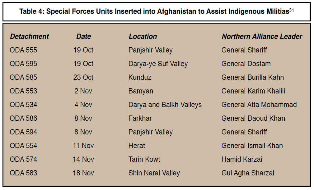 They also helped U.S. Army Special Forces A-Teams, the first of which arrived in the country on Oct 19, 2001, link up with Northern Alliance Groups. The Jawbreaker personnel, along with additional joint CIA-U.S. military teams, continued to liaise with local forces and American special operators through the Battle of Tora Bora in December 2001.