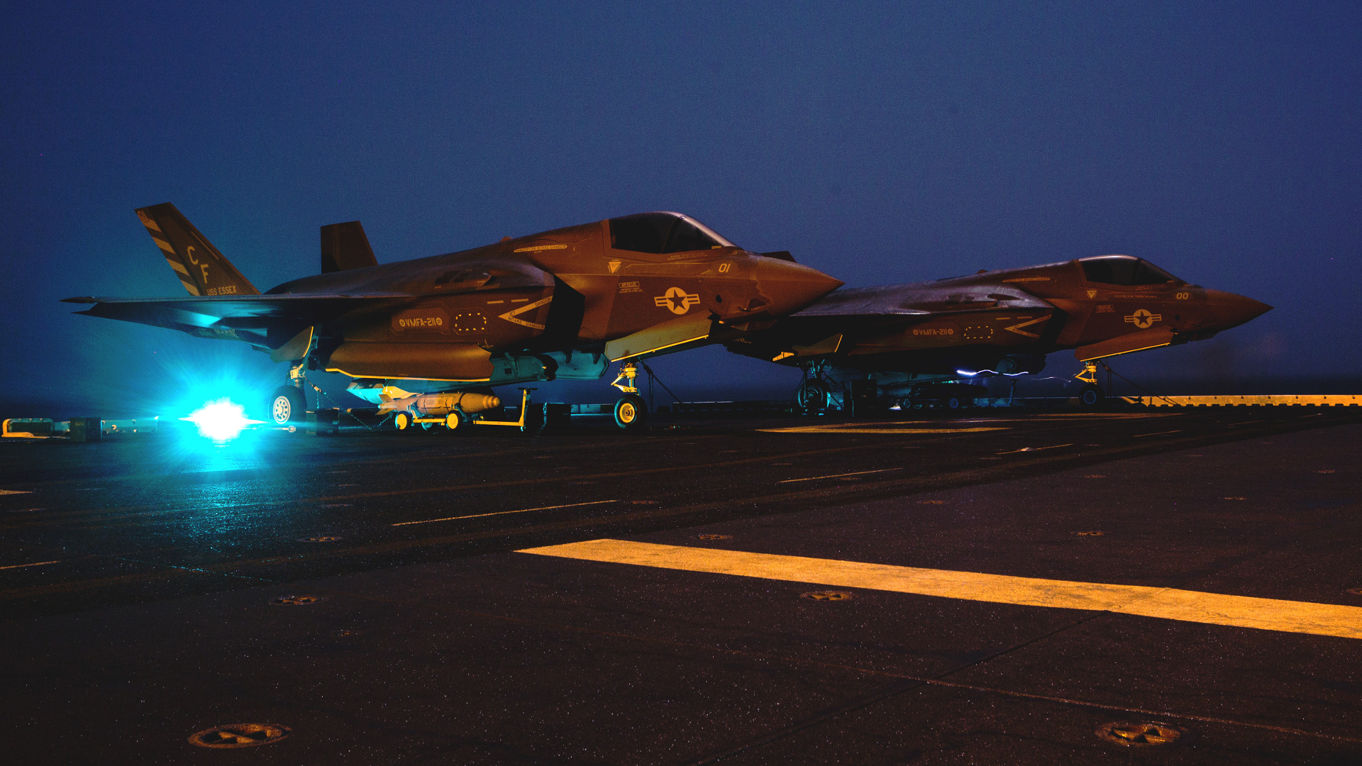 The Marines declared they had reached initial operational capability with the F-35B in 2015 and forward deployed the aircraft to Japan for the first time in 2017. In March 2018, a detachment of the stealth fighters joined the first-in-class amphibious assault ship USS Wasp and her Amphibious Ready Group (ARG) for their first-ever deployment as part of a Marine Expeditionary Unit (MEU). The, in July 2018, another six jets, from VMFA-211, joined the Wasp-class USS Essex and her ARG as part of the 13th MEU, ahead of a routine cruise that would take them to the Horn of Africa and the Middle East.