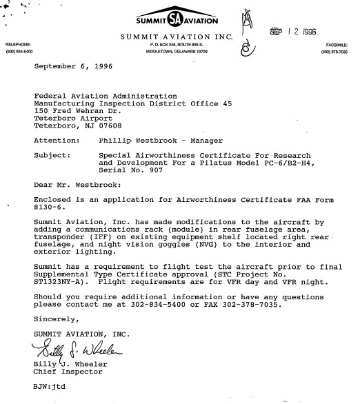The year before, Starflite had acquired it from a company called Ace Aircraft Corp., which had the plane registered to an address inside an office building in Northern Virginia. Shortly before Ace bought it in 1996, the previous owner, East Texas Aircraft Service Corp. had hired a Delaware-based firm called Summit Aviation to installed a military-style identification friend-or-foe transponder, additional communications equipment, and a night vision goggle compatible cockpit layout in the Porter, according to documents we at The War Zone obtained from the Federal Aviation Administration via the Freedom of Information Act.