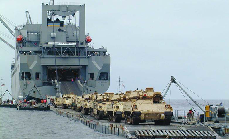 He is completely right. Take Operation Airborne Dragon in 2003. It took 30 C-17 sorties to bring in just five Abrams tanks, five Bradleys fighting vehicles, and a battalion command post, along with the personnel to man those vehicles and facilities. Keep in mind that a single tank company has 14 Abrams main battle tanks. In addition, facilities to even land those aircraft may be next to non-existent during the opening weeks or even months of a conflict—another similar hard reality the USAF is now finally coming to terms with. In addition, Sea bases can pop up virtually anywhere to work as a nexus between MSC’s largest logistics ships and the shore.