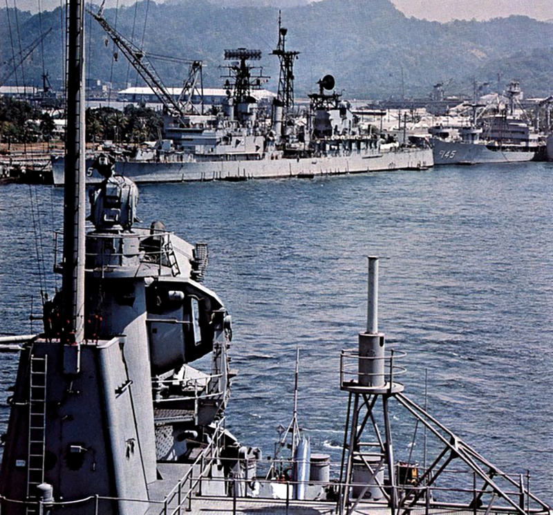 Since E division was in charge of the movies for the ship, I went to the local Navy motion picture office to get new movies for the crew to watch. This also allowed me to make a quick phone call to my wife to let my family know we had arrived safely. This was long before the internet and email. Letters could take a couple of weeks to travel between the ship and home. Apparently, some of my shipmates went to the base enlisted club and got into a dust-up with some of the local sailors. When we left port after a few hours, the Engineering Officer (aka Cheng or Chief Engineer) had the supervisors go around and ensure the watch-standers hadn’t indulged in adult beverages.