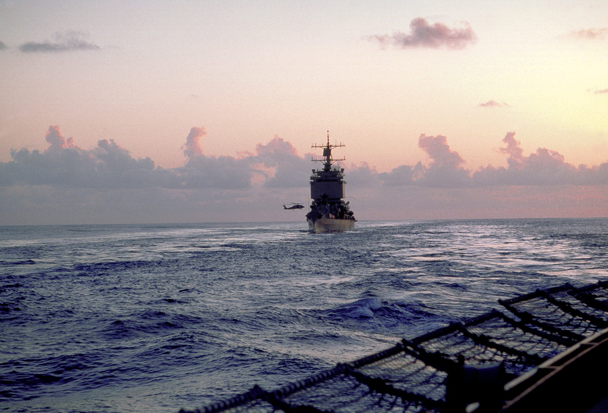 In 1987, we were deployed to the Arabian Gulf area during the Iraq-Iran War. We had the Commander of the Joint Task Force Middle East embarked. We had picked him up at Diego Garcia in the Indian Ocean around Labor Day and were to transfer him and his staff to the group relieving us (with the USS Iowa) but he didn’t want us to leave as no other ship had the flag spaces we had. Fortunately, he was over-ruled and we were allowed to leave the operation area after over 100 days continuously at sea.