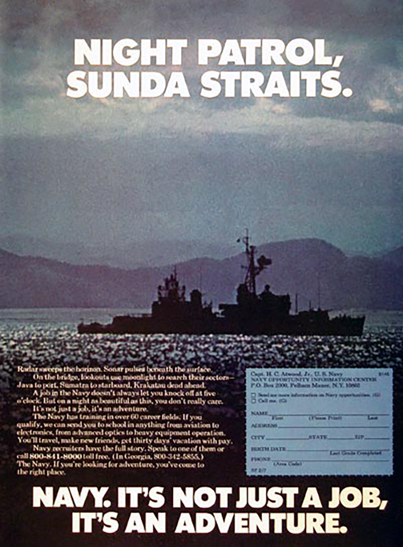 In order to get back to the west coast, I took a shore duty assignment as a recruiter in the Los Angeles Navy Recruiting District. It was an interesting time to be a recruiter. Recreational drug usage was high (no pun intended) among the target group for military enlistment, 17-25 year-old males. We actually had to get permission to send a female applicant to the processing station. There were a few reasons for this such as the ‘traditional’ jobs a lot of females wanted were overfilled with females (administrative and medical positions mainly) and at the time the sea duty slots for females were few and far between.