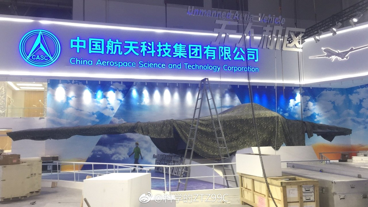 Elsewhere, another firm, the Chinese Aerospace and Technology Corporation (CASC), plans to debut another flying wing unmanned aircraft, or a mockup or model thereof, at Zhuhai. Pictures of that company’s booth in the exhibition hall had shown another, larger flying wing-shaped aircraft covered cloth mats.