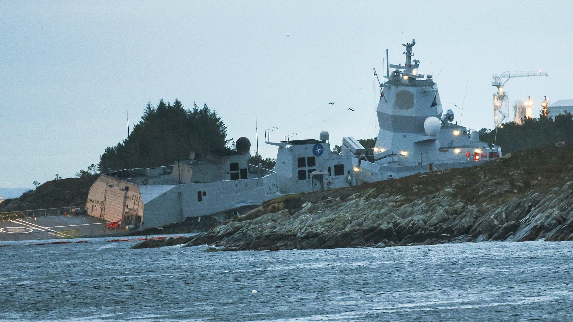 We still don’t know many details surrounding what appears to be a particularly desperate incident that occurred near Bergen, Norway overnight, but in this case, a picture is worth a thousand words. The Aegis combat system equipped Norwegian frigate Helge Ingstad had a collision with the oil tanker Sola and suffered significant damage. According to reports and the photo in the embedded tweet below, the damage was so bad that the captain ordered the ship’s crew to run the vessel aground near the entry to a fjord to keep it from sinking.