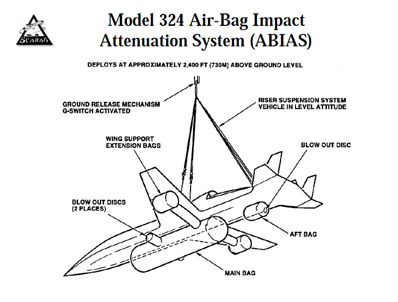 After blasting off from its launcher, Scarab could reach a top speed of nearly 650 miles per hour and an altitude of up to 40,000 feet, depending on its predetermined altitude and mission profile, and could carry a payload of more than 250 pounds over a total distance of 1,400 miles. When it returned to base, its small jet engine would cut out and a parachute would deploy. The drone would eventually sail down to earth, landing on a set of inflatable airbags hidden inside the fuselage and wings.