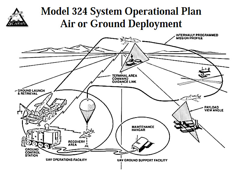 Teledyne Ryan, which itself became part of Northrop Grumman in 1999, developed the jet-powered, ground-launched Scarab, also known as the Model 324, specifically to meet Egyptian requirements in the early 1980s. Scaled was directly involved throughout the entire design and flight test processes.