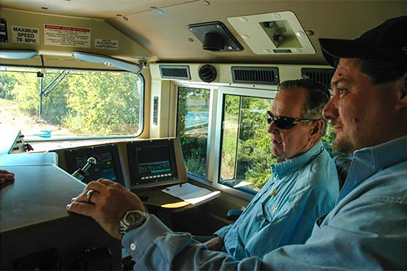 “When we set out to design the Bush Library and Museum, I did not want it to be about just one person – rather, we wanted to touch a broader cross-section of American life, encompassing an eventful period of our history,” President Bush said. “The ‘Tracks of the Iron Horse’ and the unveiling of UP 4141 is the latest example of our commitment to attracting the most unique, educational, and entertaining exhibits we can – and I am deeply grateful to Dick Davidson and Union Pacific for their friendship and support. If we had the UP 4141 back when I was still in Office, I might have left Air Force One behind more often!”