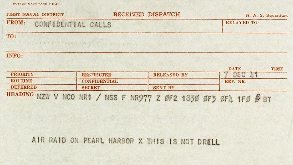 The message above was sent by the office of the Commander in Chief of the Pacific Fleet just minutes after the Japanese attack on Pearl Harbor began. It went out to ships and naval stations throughout the Pacific region and word of it quickly spread beyond. It was the first official correspondence acknowledging an event that would change the course of history in so many ways—one that still hangs over strategic decision making and national security policy to this very day.