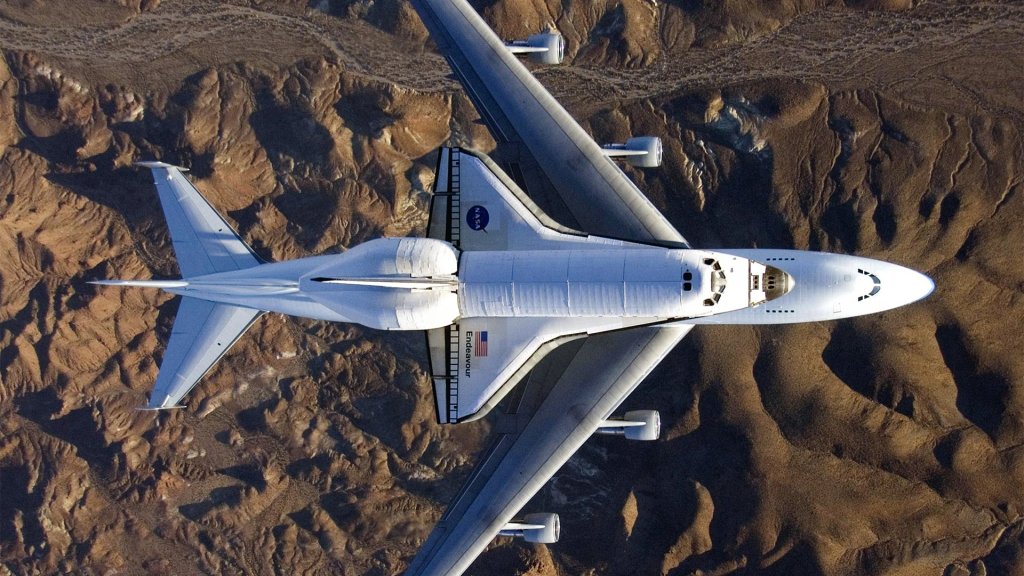 When I was last down at Edwards AFB, I also spent some time at what is now known as Armstrong Flight Research Center. Before the name change in 2014, it had been famously titled the Dryden Flight Research Center. During my time with the awesome public affairs team there, a photo on the wall grabbed my attention. It was an incredible image of one of NASA’s two Shuttle Carrier Aircraft (SCA) with the Orbiter Endeavor mated to its back as it flew over a gorgeous desert landscape. But what made the shot so amazing was how the perspective was from directly above, looking down.