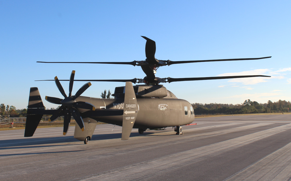 The Defiant is an advanced compound helicopter, which combines rigid, coaxial rotors with a pusher propeller at the rear. This configuration offers increased speed and greater maneuverability over traditional helicopters, with an expected top speed that is more than 100 miles per hour faster than a Black Hawk. The Sikorsky-Boeing team also says the SB>1 will have improved stability while hovering and be quieter than existing types.