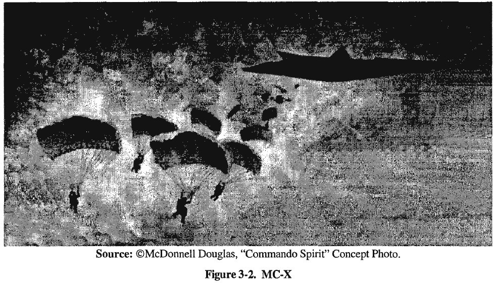 Air Force Special Operations Command (AFSOC), which had only become a major command in 1990, started a project that it referred to variously as Commando Spirit and MC-X. This project’s goal was to develop a smaller aircraft to replace its MC-130 types specifically in the special operations forces insertion and extraction roles. The existing C-130s would continue to perform complimentary special operations cargo-carrying missions in lower risk environments and fulfill air-to-air refueling requirements for special operations helicopters.