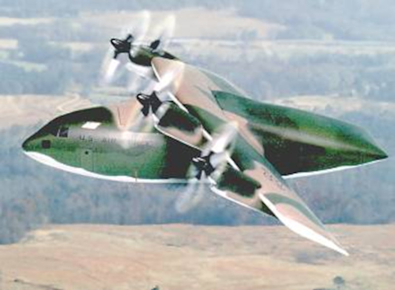 Boeing and Lockheed Martin developed concepts for the ATT. Boeing, having acquired McDonnell Douglas in 1997, proposed a tailless, tilting-wing derivative of the C-17 with four turboprop engines, nicknamed the Super Frog.