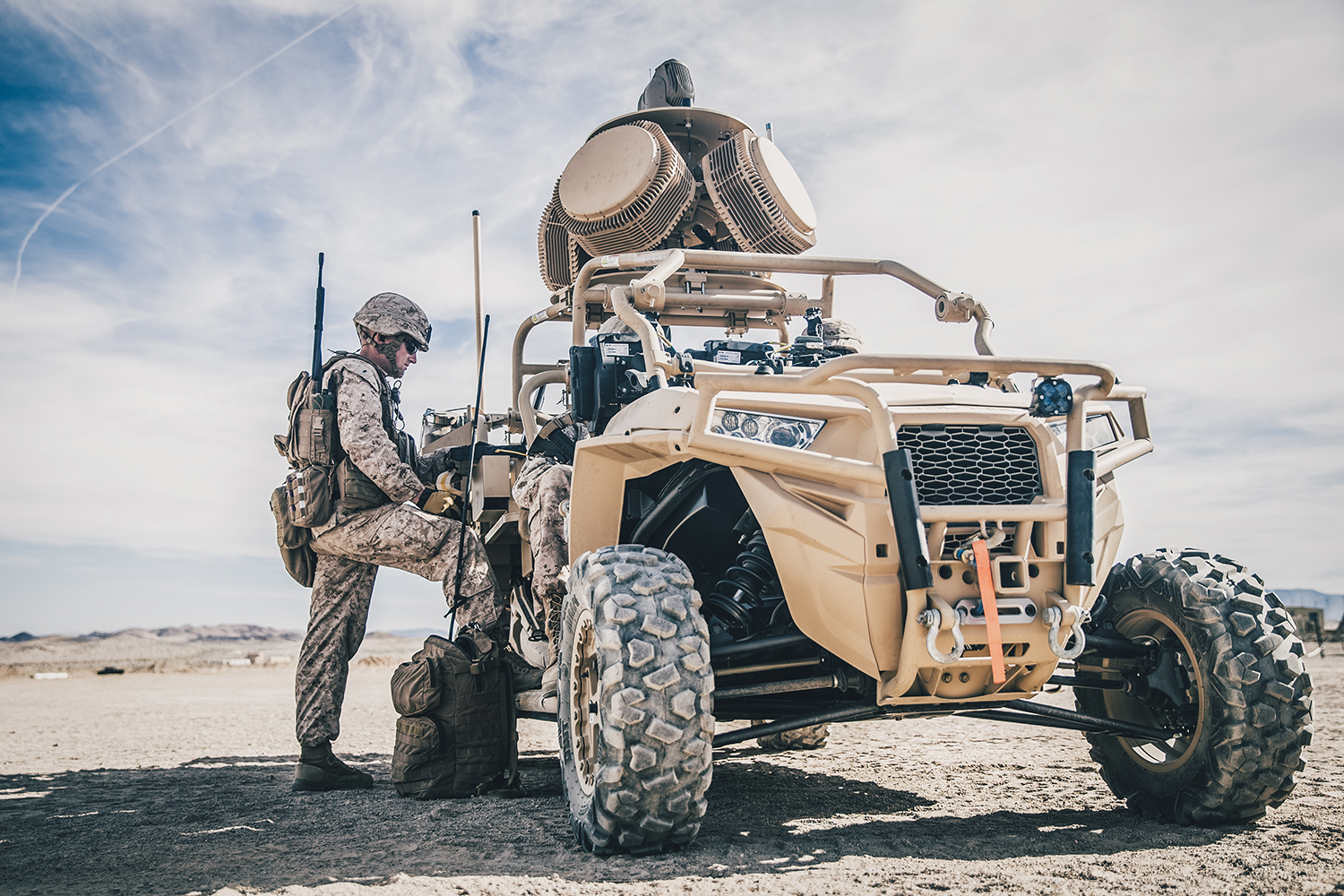 Another MRZR is used as a command and control vehicle and it may or may not feature the same sensor systems, although the addition of a second RPS-42 set seems standard. This allows one unit to keep a big-picture view while the other uses the optical system to ID targets. Both are equipped with a small generator for stationary operations and the communications systems needed to support the system.