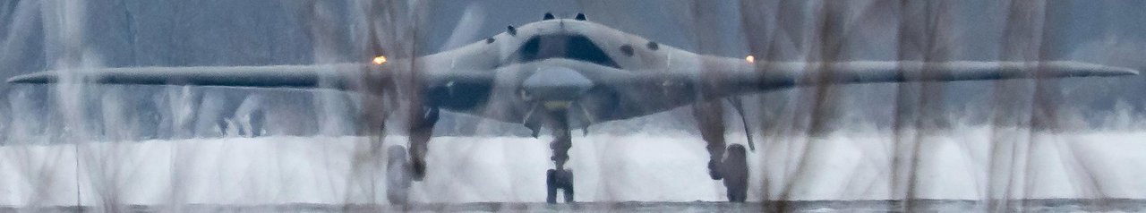 The photo that appeared on Russia’s top social media site VK shows a flying wing UCAV on a frigid taxiway and looks to have been taken at a distance and between barren trees surrounding the airfield.