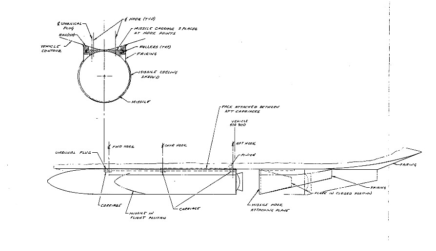 Lockheed’s design study says that the complete payload design was long enough to extend rearward beyond the main landing gear when loaded onto the AP-12. However, the report adds that ground clearance would not be any more of an issue during takeoff than with a standard A-12. The plane’s landing gear itself would need modifications to accommodate the changes in weight and overall aircraft handing during both takeoff and taxing, though.