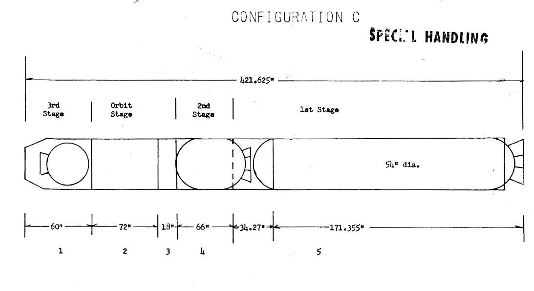 The second configuration was essentially a standard Polaris A3 with a satellite in place of the nuclear warhead. The third and final configuration, which matches the dimensions in the Lockheed AP-12 report, featured an additional third stage to improve performance. Additional proposals from Lockheed included adding tail fins to the end of the booster for added stabilization after release from the mothership, but before the rocket motor actually ignited.