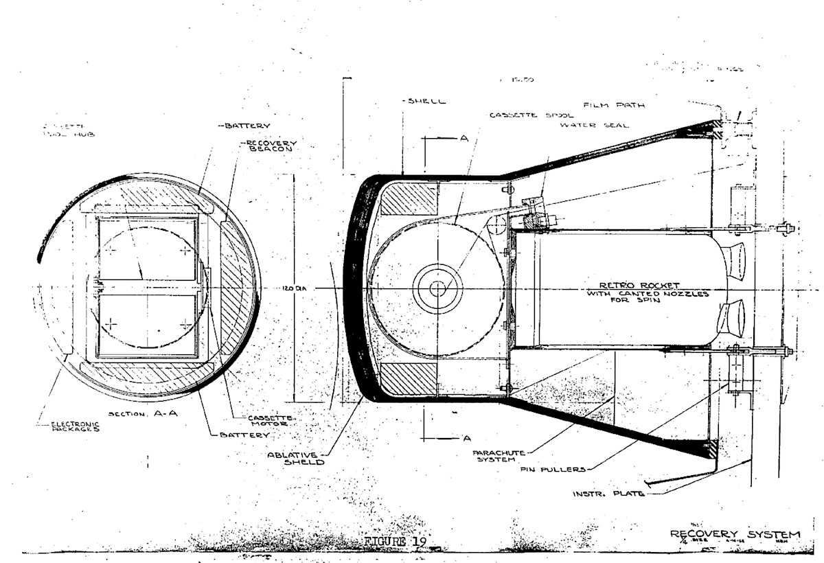 If all went according to plan, a recovery capsule containing the film canister would detach from the rest of the satellite and re-enter the atmosphere over the Pacific to the West of Hawaii. It would automatically deploy parachutes for a safe recovery in mid-air using specialized C-119 Flying Boxcar and C-130 Hercules cargo aircraft, and later or helicopters.