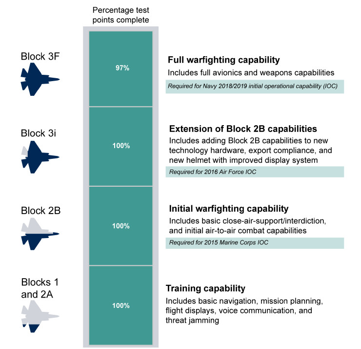 The Joint Strike Fighter program office has received funds for a new test article that is representative of the current B model configuration that it could use to gather more realistic data from the third round of fatigue testing, but it has yet to actually acquire that airframe, according to the latest review. The F-35C still need to complete its third cycle of testing, as well, though previous DOT&E reports have not highlighted severe structural issues with that model. The F-35A has completed its full battery of tests without any apparent major issues.