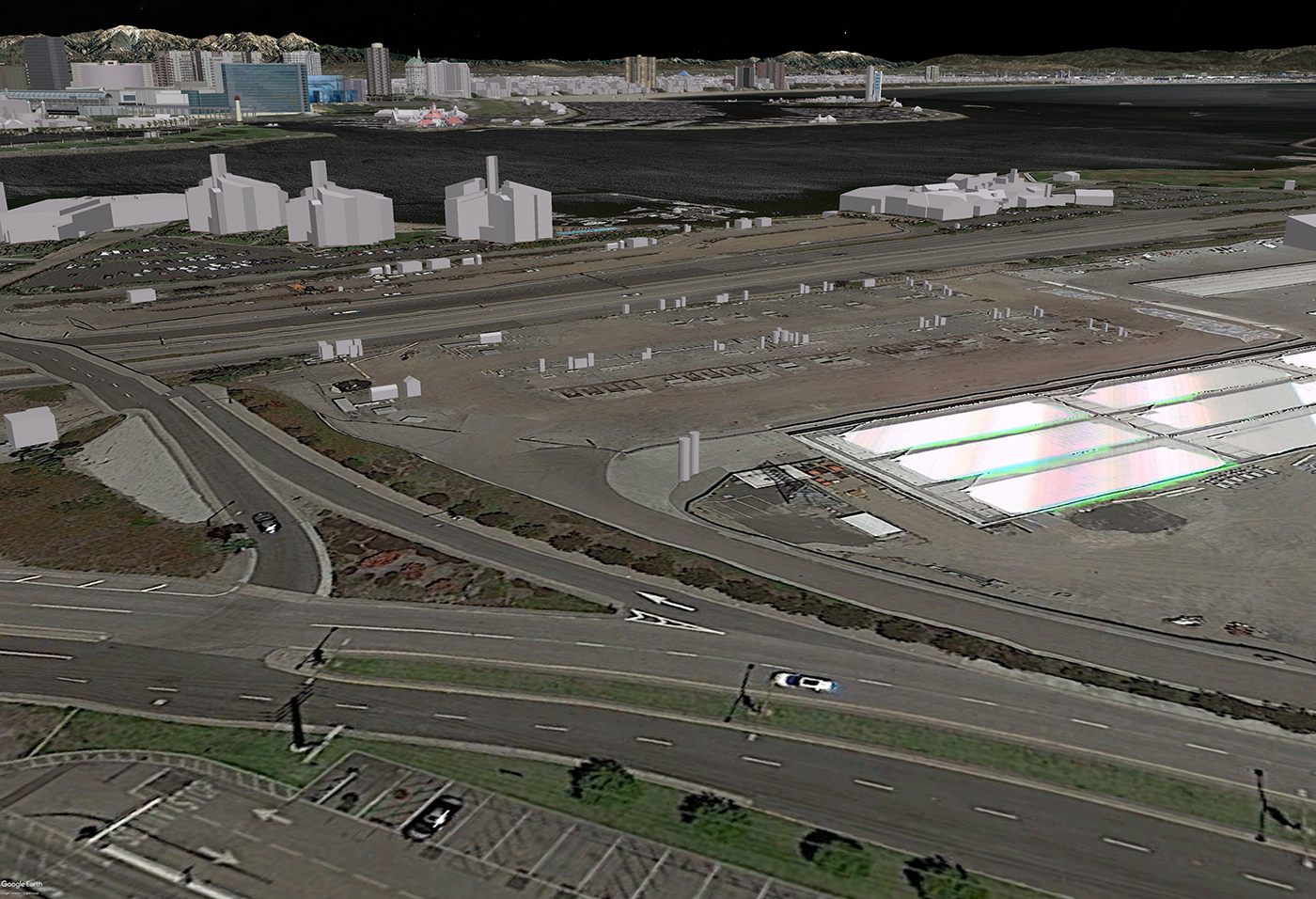 You can see precisely where the photo was taken in the Google Earth and Google Maps imagery below. The building used was the Port Of Long Beach Administrative Building, a seven-story structure not far from the Queen Mary.