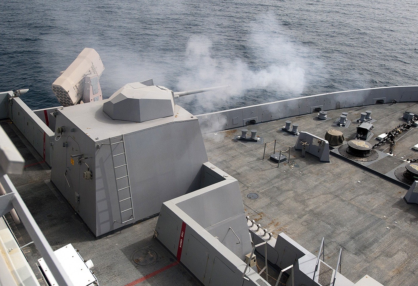 It’s also unclear what level of impact the installation of the Bushmaster cannons will have on the ship’s radar cross-section. The 57mm guns were designed to be encapsulated in stealthy turreted cupolas when not in use. The fact that they were integrated into the ship’s combat system also meant they were mounted lower on the upper hangar enclosure in their wedge-shaped, faceted cupolas. The 30mm guns will not be concealed at all, they sit higher atop a trapezoidal structure with their turrets and barrels always exposed.