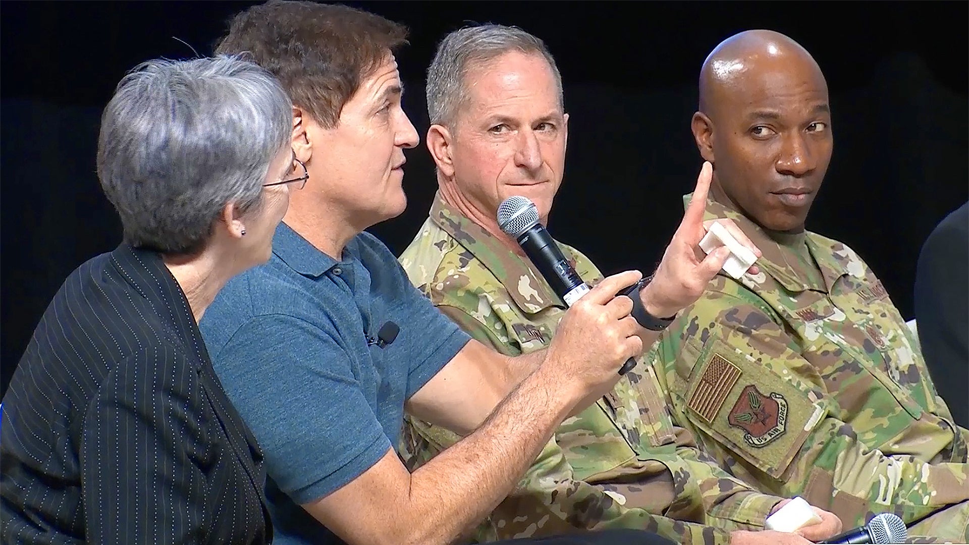 The Air Force’s Air Warfare Symposium is underway in Orlando and part of the program is the final judging for this year’s Spark Tank innovation award. A special guest was on the panel who is no stranger to the pressure of picking winners—billionaire Dallas Mavericks owner and the star of ABC’s Shark Tank, Mark Cuban. Also among the judges were Air Force Secretary Heather Wilson, Air Force Chief of Staff General David Goldfein, and Chief Master Sergeant of the Air Force Kaleth Wright—so yeah, no pressure right!?