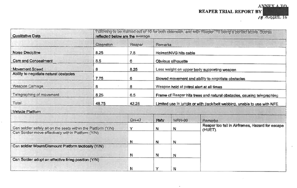 Some of these results can certainly be blamed on a lack of experience with the Reaper and further practice using the system may have led to better performance. However, this would have meant the Australian Army might have been looking at increased training requirements had it adopted the system for widespread use.