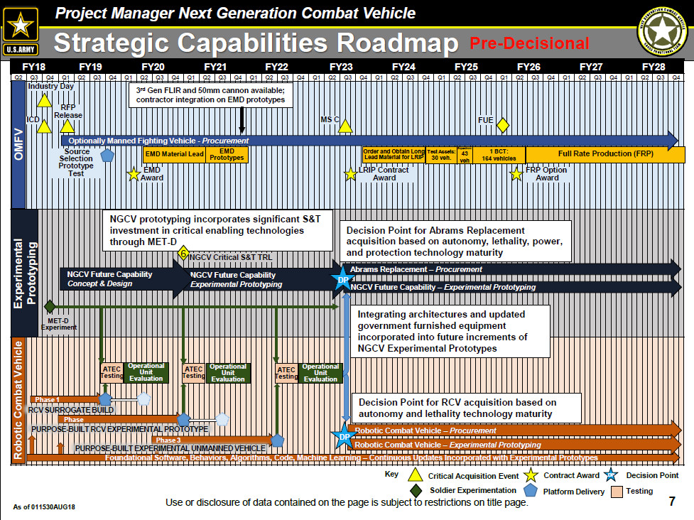The present plan is to be able to start low-rate initial production of the selected OMFV design by the middle of 2023 and have the first brigade entirely equipped with the new vehicles by the end of 2025. In parallel, the Army has already begun work on what it calls “NGCV Future Capability,” which will involve multiple operational user evaluations of separate experimental vehicle designs, such as potential RCVs, in the coming years. The service wants to begin buying at least some of the fully unmanned vehicles by 2023, as well.