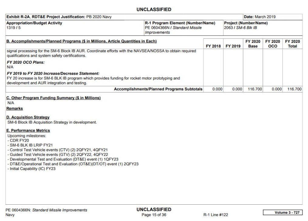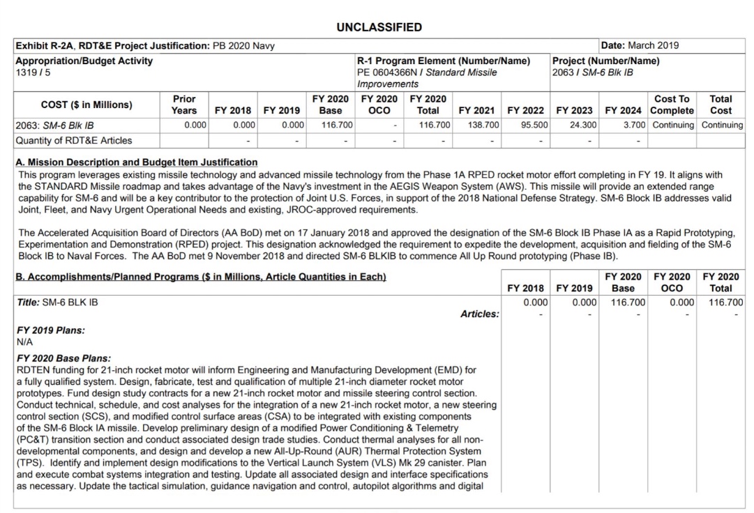 The documents state the SM-6 Block IB is planned to make it through its primary development by 2024.