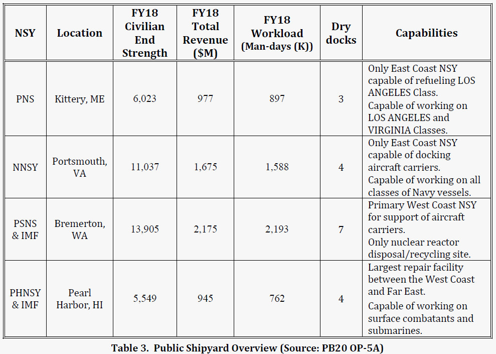 The Navy itself has just four shipyards still in operation, all of which are in need of major upgrades and rehabilitation to support both existing ships and those the service expects to purchase in the future. Efforts to shift some of that burden to certified private companies has been ad hoc and has often lengthened the time and cost of the entire process since these shipyards need to go through a contracting process in each case and then go about hiring additional workers and setting up supply chains to support the work.
