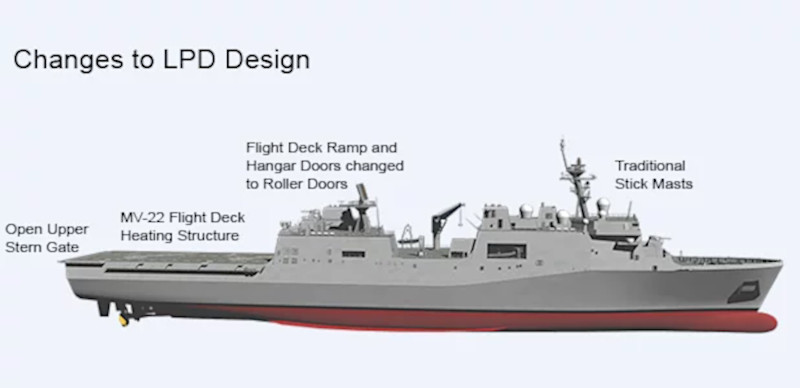 Still, the Marine Corps doesn’t feel that it will take an America-class amphibious assault ship to carry an aviation force with 10 F-35Bs forever. The Flight II San Antonio-class landing platform docks, previously known as the LX(R) and that will replace the Whidbey Island-class landing ship docks, are set to have improved flight deck capacity.