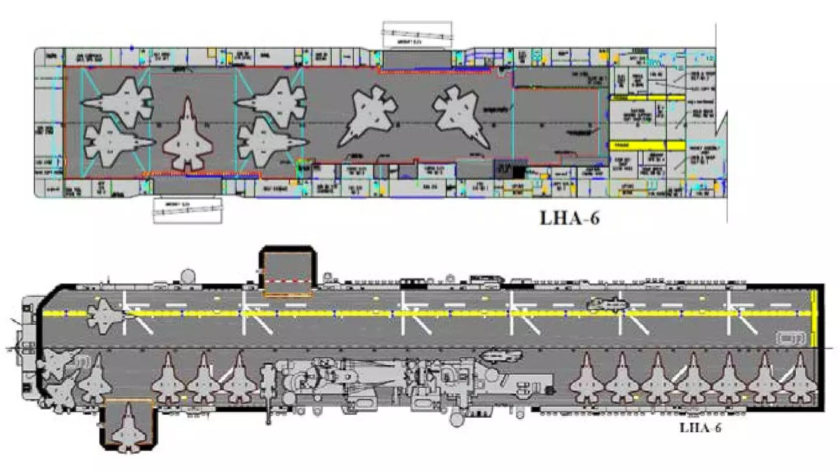 It’s not clear if this would necessarily work with the third America-class ship, the future USS Bougainville, which is basically in a sub-class of its own. It will feature greater deck space, but will have a well deck, a feature missing on the other two America class ships, reducing the size of its hangar and aviation-related spaces.