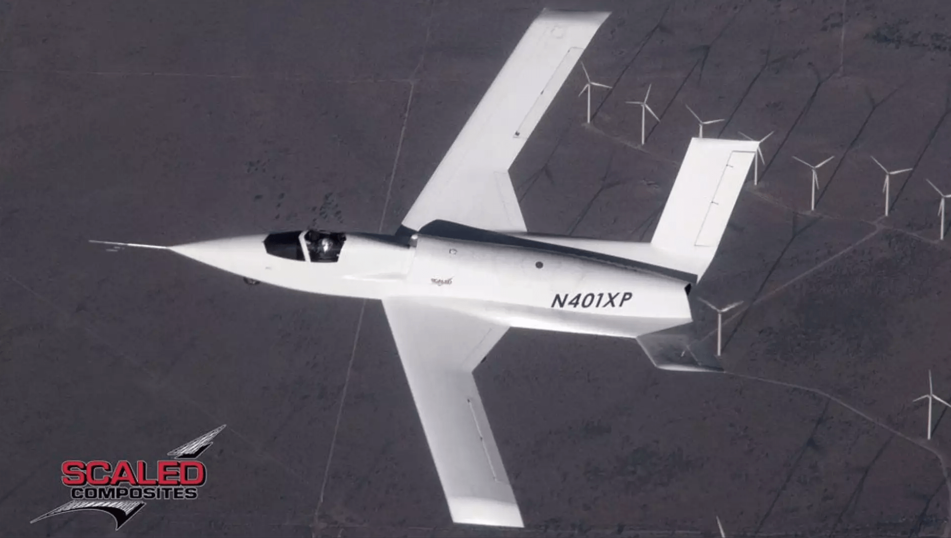 “Scaled Composites is proud to announce the rollout and first flight of its most recent project, experimental aircraft Model 401. Scaled worked with a proprietary customer to build two vehicles to demonstrate advanced, low-cost manufacturing techniques and to provide aircraft for research flight services to industry partners and the United States government. The two vehicles were designed to be identical in outer mold line and performance, with each aircraft powered by a single Pratt & Whitney JTD-15D-5D engine with 3,045 pounds of thrust.