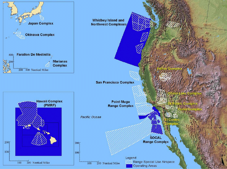 Combined, these ranges absolutely dwarf those that exist over land, including the expansive Nellis Test and Training Range that occupies a huge chunk of Southern Nevada. In fact, from what we understand, quite a bit of testing of secretive aircraft based in the deserts of the western U.S. occurs over these over-water ranges. Being able to access them without flying over the population in itself is also a huge plus.