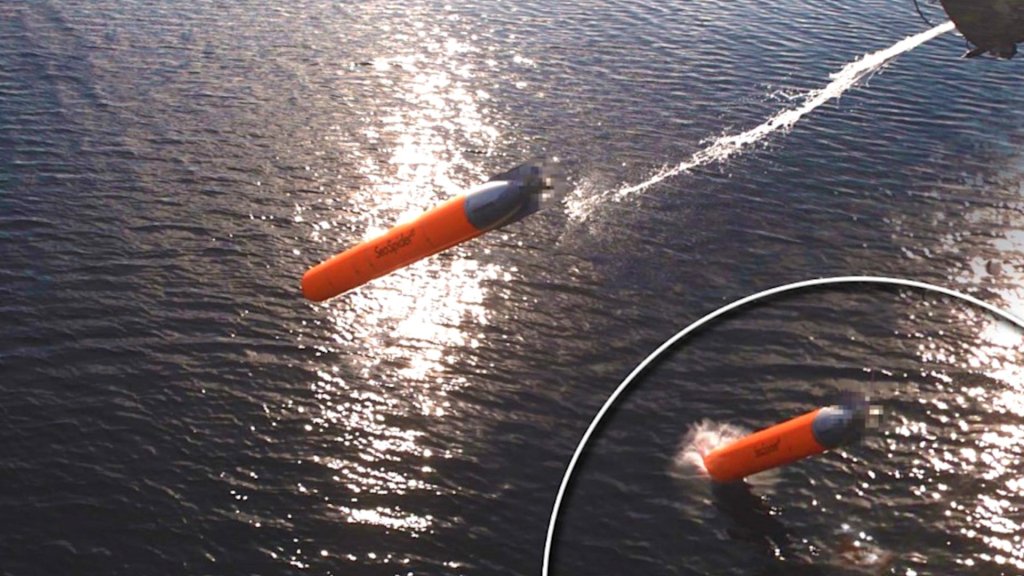 SeaSpider’s most novel feature is the use of a rocket motor rather than more traditional chemical or electric propulsion systems found in most torpedoes. Atlas Elektronik says the resulting system is quieter, which in turn makes it easier for it to “hear” the threat and lock on. Magellan Aerospace Corporation also reaches its top speed very quickly, meaning that the interceptor sinks less after launch, making it well suited to shallower water environments. The configuration is sensitive enough that Atlas Elektronik blurred out the rear of the interceptor in the photo it released of one of the launches during the sea trials.