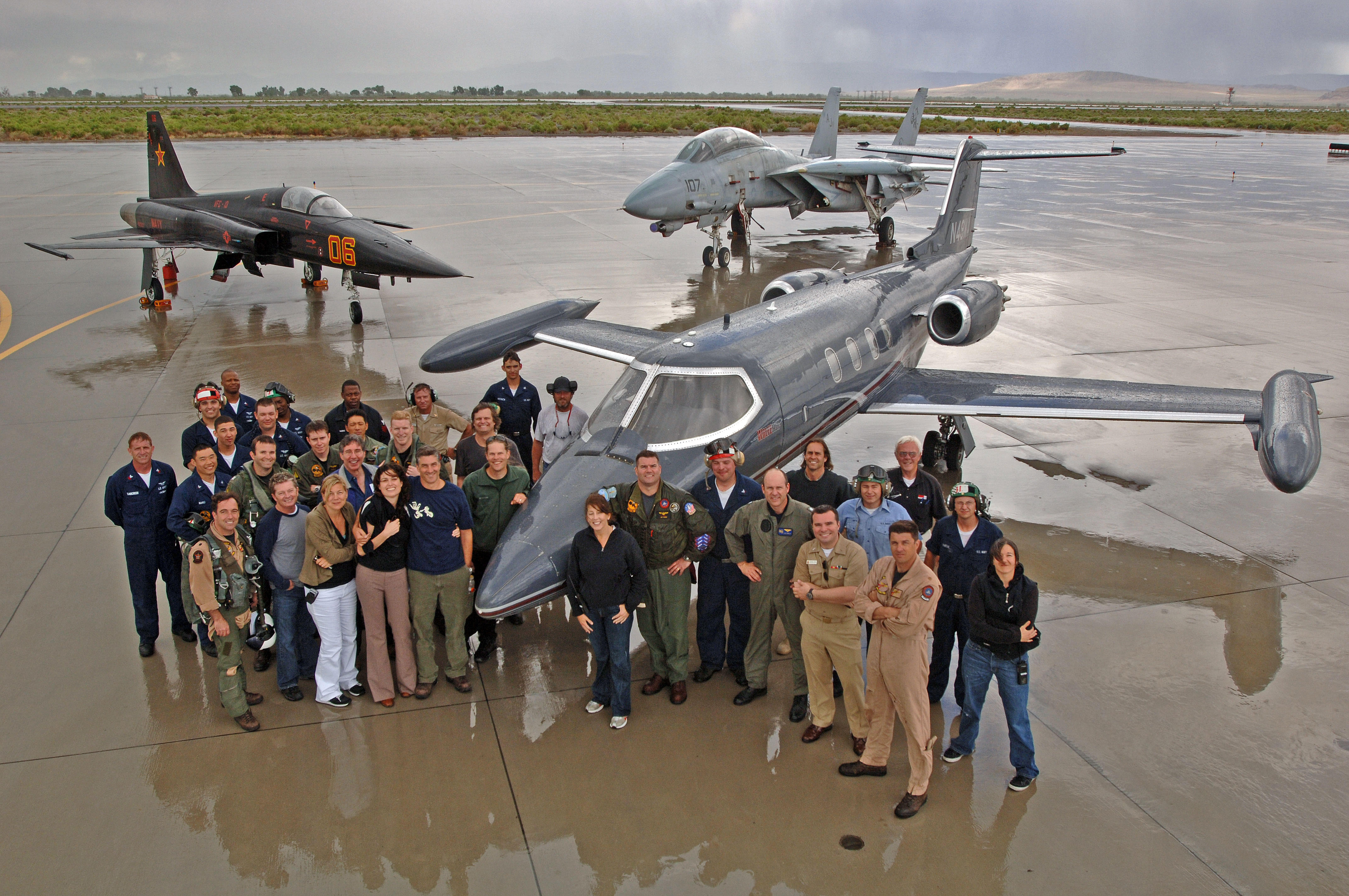 We filmed from the air, from a specially modified Learjet, and from a mountain top in Fallon— Fairview Peak. We strapped small cameras throughout the cockpits of the fighters to give a number of vantage points, including on the helmets of some of the pilots as they were maneuvering or landing on the ship.