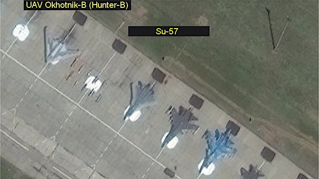 Putin visited Chkalov, which is situated in Russia’s southwestern Astrakhan region, on May 14, 2019, arriving with an escort of six Su-57 advanced combat jets. The satellite image of the flight line at the test center subsequently appeared on social media, showing the unmanned combat air vehicle (UCAV) next to an Su-57 and other aircraft, including an Su-34, a MiG-29, and multiple Sukhoi Flanker variants. The new imagery does seem to show that the drone has a new paint scheme, which might indicate that it is a more refined design or a second prototype, but official Kremlin statements did confirm that the Russian President got a chance to see the Okhotnik-B.