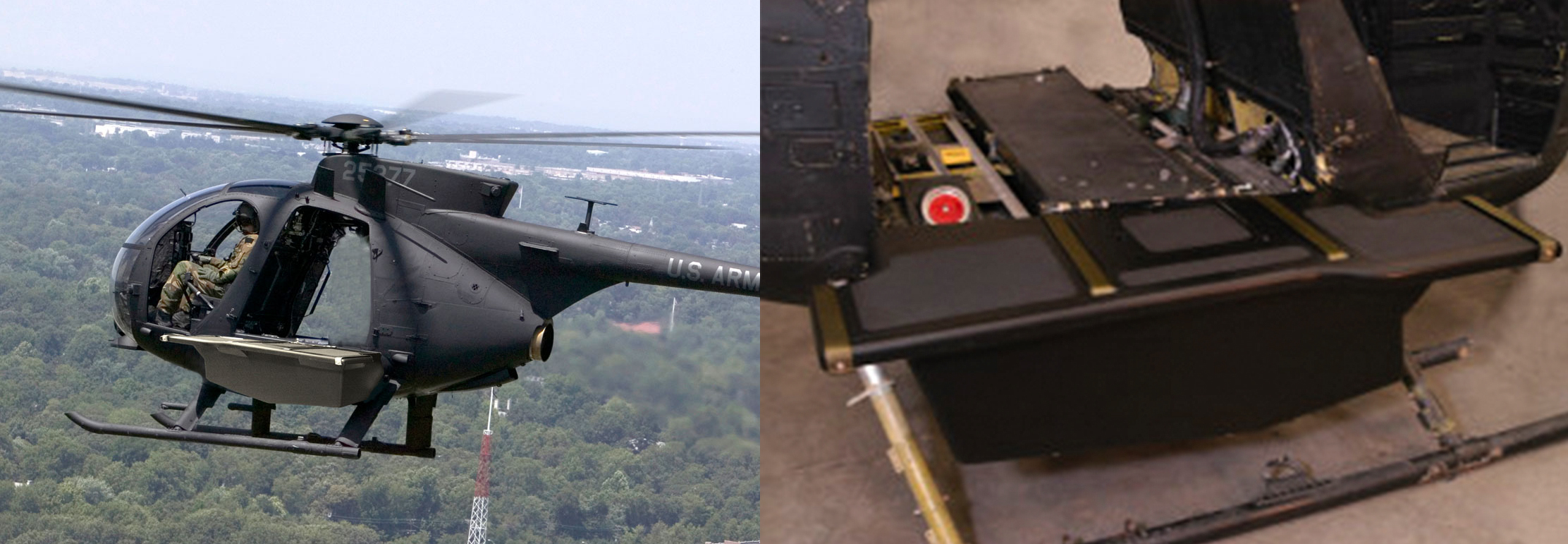 What we are seeing in the video seems to be an extremely uncommon sight on the 160th’s Little Birds. It is a novel external fuel tank design by Robertson Fuel Systems.