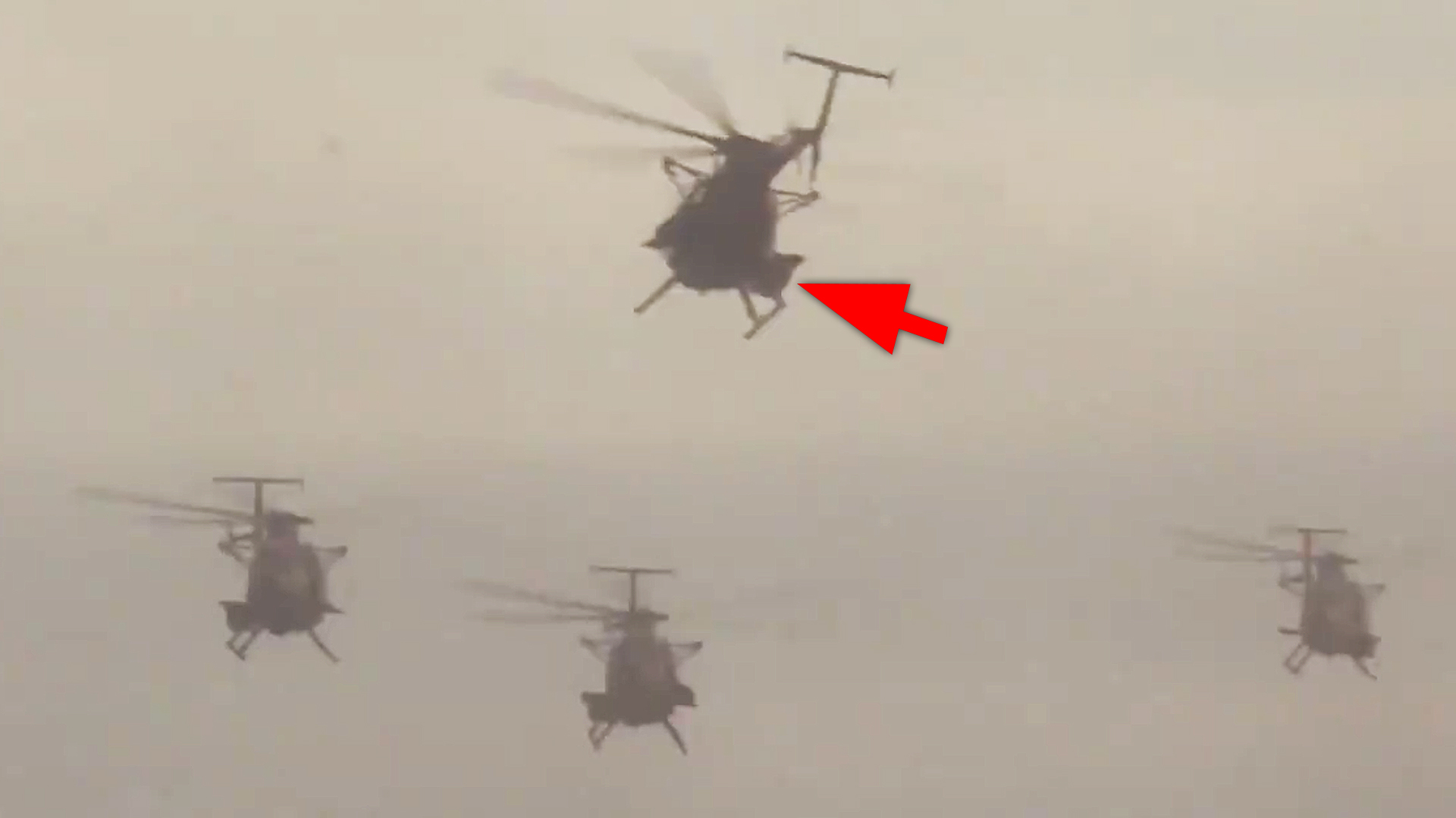 The U.S. Army Special Operations Command has posted a new video promoting its famed 160th Special Operations Aviation Regiment, better known as the Night Stalkers. The short montage of clips includes a backlit shot of four MH-6M Little Birds flying together as is extremely common for the type and the elite unit they fly with as well as a quick close up of a MH-6 approaching the camera. What’s different are the large bulges attached to their sides. This is where a plank used to externally airlift special operators is usually fitted or where weapons mounts are attached in the case of the AH-6M attack-configured Little Birds, but that’s not the case here.