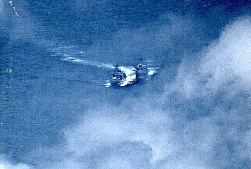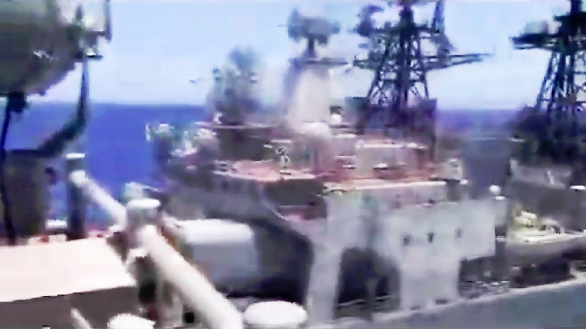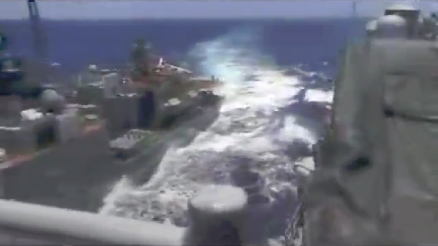 The Navy has since released two videos and two pictures of the encounter, which confirm how close the ships were until Chancellorsville was able to drop back and out of harm’s way. The pictures appear to be stills from a camera turret, which may have been on a P-8A Poseidon maritime patrol aircraft that was flying nearby or from the cruiser’s helicopter if the incident had forced it to abort its recovery.