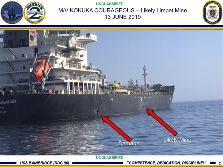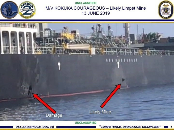 The U.S. government asserts that Iran was attempting to remove evidence of its involvement in the attack. Iran has denied any involvement and denies that its personnel recovered a mine, but has also offered no evidence to support those claims.