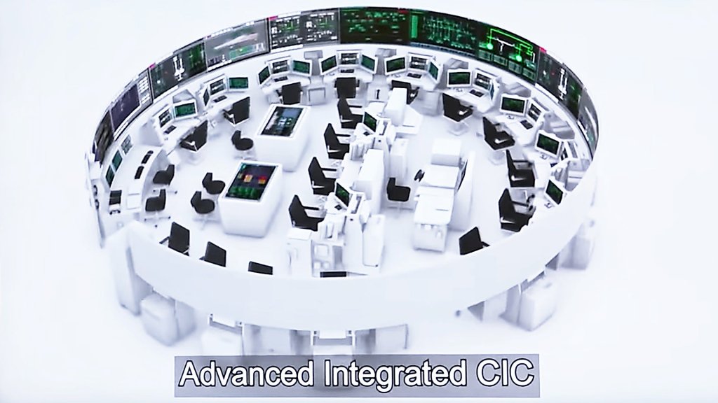 According to the always fantastic Naval News, AICIC is made up of an outer rim of 14 multi-function consoles, a center helm station, four more multi-function consoles for command staff and two large table-like displays used for mission planning and navigation.