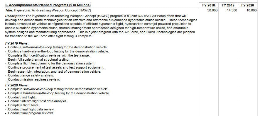 A first flight would certainly be an important step in that direction. While Raytheon’s Bussing did not say specifically when the first flight of their design would occur, in its most recent budget request, DARPA said HAWC flight testing was set to begin in the 2020 Fiscal Year, which starts on Oct. 1, 2019. It is possible that the program, or Northrop Grumman and Raytheon’s particular design, is moving ahead of schedule.